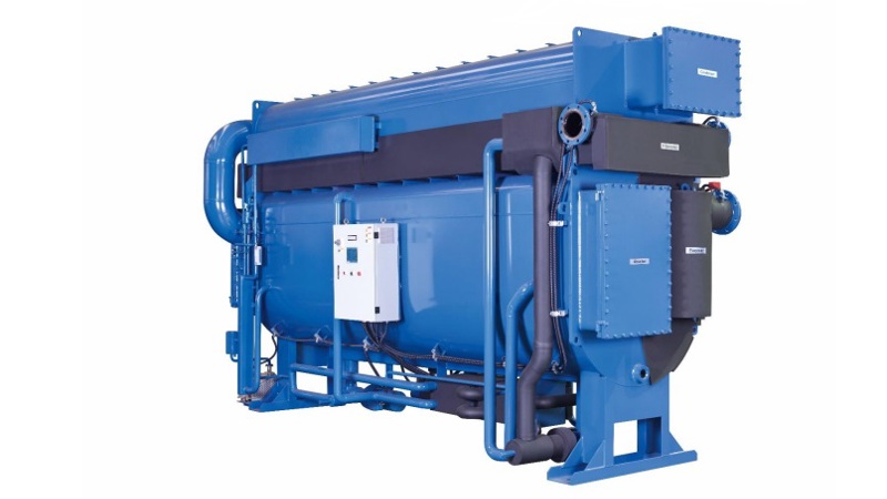 Een hoog temperatuur water-water warmtepomp geschikt voor binnenopstelling en voorzien van een afneembare geluidswerende omkasting.
